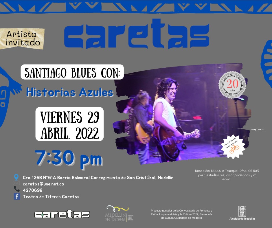 Historias azules Concierto con Santiago Blues Donación $6.000 o trueque